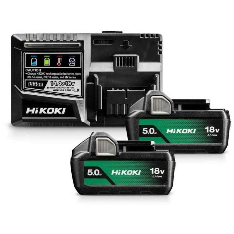 Kit de inicio HIKOKI (2 baterías BSL 1850MA (18 V/5,0 Ah) y cargador rápido UC18YSL3) UC18YSL3WKZ