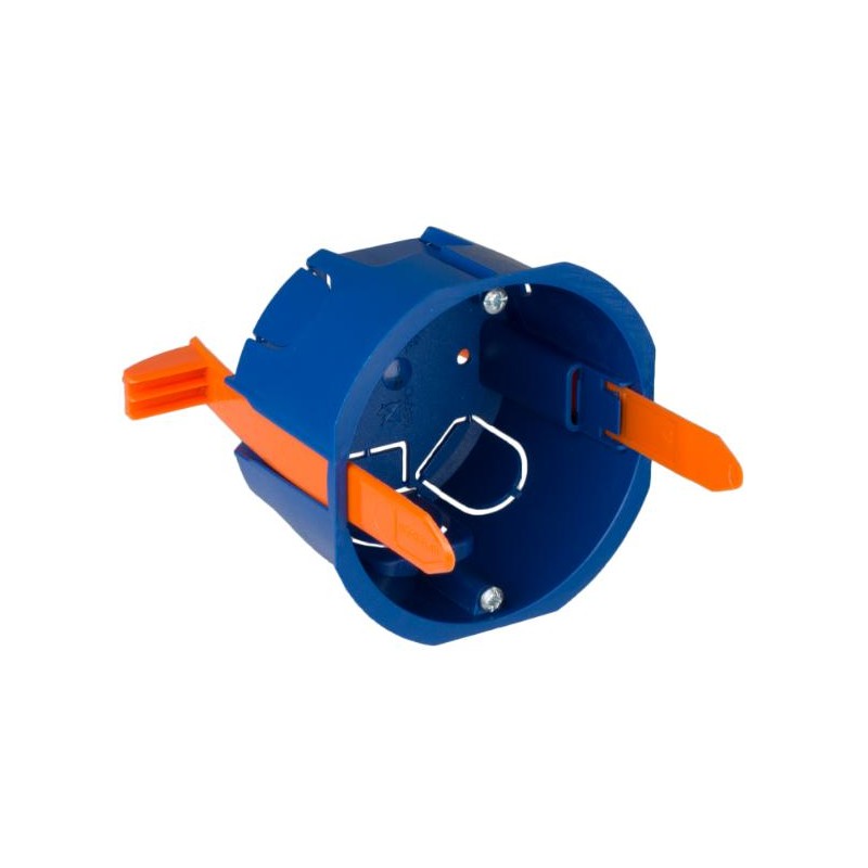 Caja de mecanimos de empotrar en tabique hueco. Para 1 elemento. Sistema de fijación mediante bridas.Dimensiones para empotrar Ø 68 x 46 mm. 4 entradas para tubo Ø 20 mm. 2 entradas para tubo Ø 25 mm. Utilizar corona de Ø 68 mm.