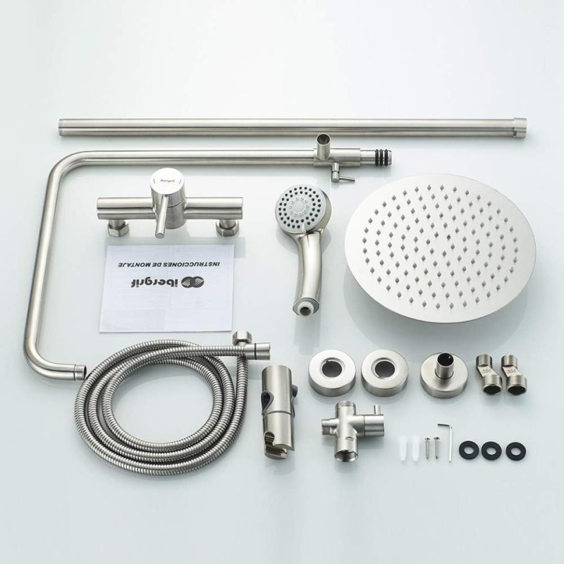Se suministra con todos los accesorios; mezclador de ducha duradero, ducha fija redonda (250 mm de diámetro), ducha de mano, riel de ducha ajustable de metal, brazo giratorio horizontal de ducha de metal, soporte de ducha de ABS y manguera de ducha (1,50 m), unseruel manuel impresionante