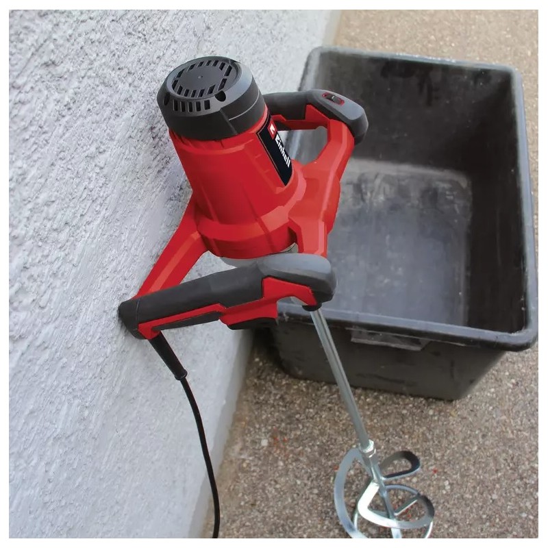 Durante la mezcla de materiales de construcción líquidos y pulverulentos, los expertos apuestan por el potente mezclador de mortero y pintura de alto valor con unidad electrónica constante TE-MS 1600-2 CE.