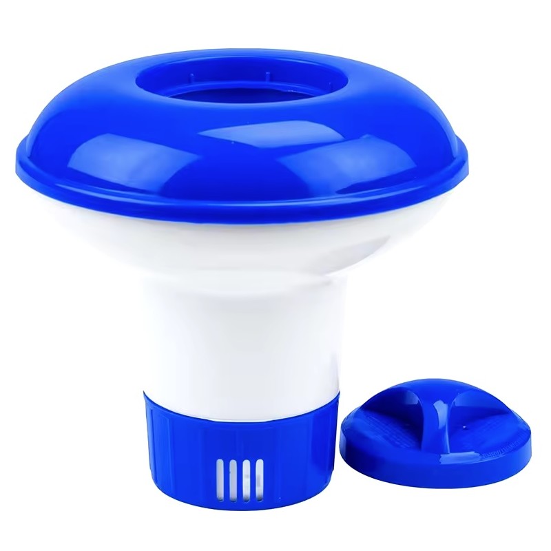Modo de empleo: Introducir las pastillas de 200 grs del producto químico y ajustar rejilla dosificadora regulándola según el tamaño de la piscina y la cantidad deseada a disolver de cloro en el agua.