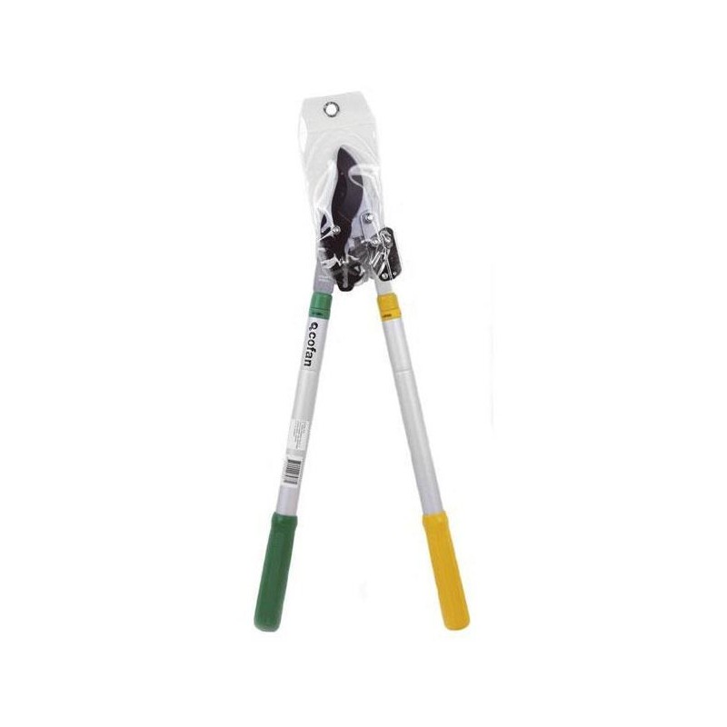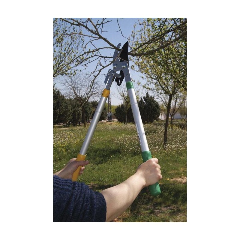 Tijeras de poda telescópicas con sistema de corte de hasta 45 mm de diámetro. Su cuchilla de corte está revestida en carbono y PTFE. Este producto está provisto de mangos telescópicos ajustables fabricados en aluminio con gris confortables. Su longitud permite alcanzar ramas y tallos a una distancia mayor que con las tijeras convencionales de poda. Además, esta longitud permite una aplicación de fuerza mayor. El corte que se realiza con estas tijeras es limpio, suave y eficaz. Este producto convierte la actividad del corte de ramas y tallos en un proceso cómodo de realizar. Sus mangos son ligeros pero resistentes, ideales para tareas de uso intensivo. El diseño y materiales de este producto son de carácter profesional, aunque también pueden ser utilizadas para uso doméstico.