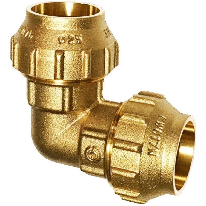 Codo fabricado en latón en 90º, con salidas manga-manga de ø50mm, unión a compresión para tubería de polietileno PE en conducciones de agua. Junta tórica en NBR.
