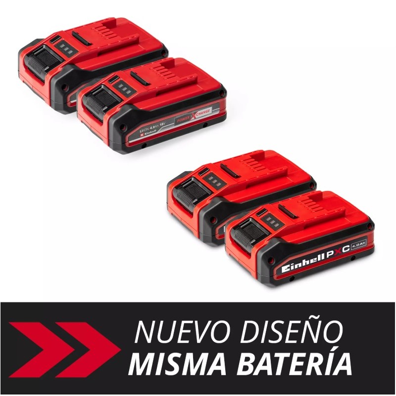 La Einhell 18 V 4,0 Ah Power X-Change PLUS en Twin-Pack es parte del sistema de baterías multifuncionales Power X-Change de Einhell, lo que permite combinarlas sin límites. Las baterías Power X-Change de aplicación universal suministran energía y resistencia a todos los aparatos con batería de toda la familia de productos en la zona del jardín y taller. Las ventajas para el cliente son obvias: con una batería y un cargador para todos los aparatos, no solo se ahorran costes considerables en la adquisición, sino que la posibilidad de aplicación universal cuida el medio ambiente y, al mismo tiempo, ofrece flexibilidad en la casa y el jardín. Además, no hay desorden ni caos debido a las más diferentes baterías y cargadores para cada equipo. Las celdas de iones de litio de última generación proporcionan un 100 % más de potencia para obtener la máxima fuerza en todas las aplicaciones, junto con un diseño compacto y una reducción de peso. Además, la tecnología PLUS es sinónimo de potencia adicional para el trabajo intensivo. Además, la batería de alta calidad resiste el efecto memoria y la autodescarga para obtener una potencia alta y constante. La PXC PLUS de 18 voltios y 4,0 Ah es una batería de gama alta de la familia Power X-Change y también adecuada para el uso con Twin-Pack en aplicaciones de 36V. El sistema de gestión de baterías ABS activo y controlado por proceso, supervisa continuamente los parámetros de la batería mediante un microprocesador. Esto garantiza la máxima seguridad, un rendimiento óptimo del dispositivo, una duración máxima y una vida útil máxima. El estado de carga actual se puede controlar mediante un indicador LED de 3 niveles. Debido a su construcción, la carcasa resiste el polvo, la corrosión e influencias mecánicas. El recubrimiento de goma le confiere a la batería una alta protección contra golpes y un buen agarre. Esta se puede retirar fácilmente de todos los aparatos con la ayuda de la cavidad de agarre. El alcance del envío contiene dos baterías Power X-Change PLUS de 4,0 Ah. El cargador es adquirible por separado.