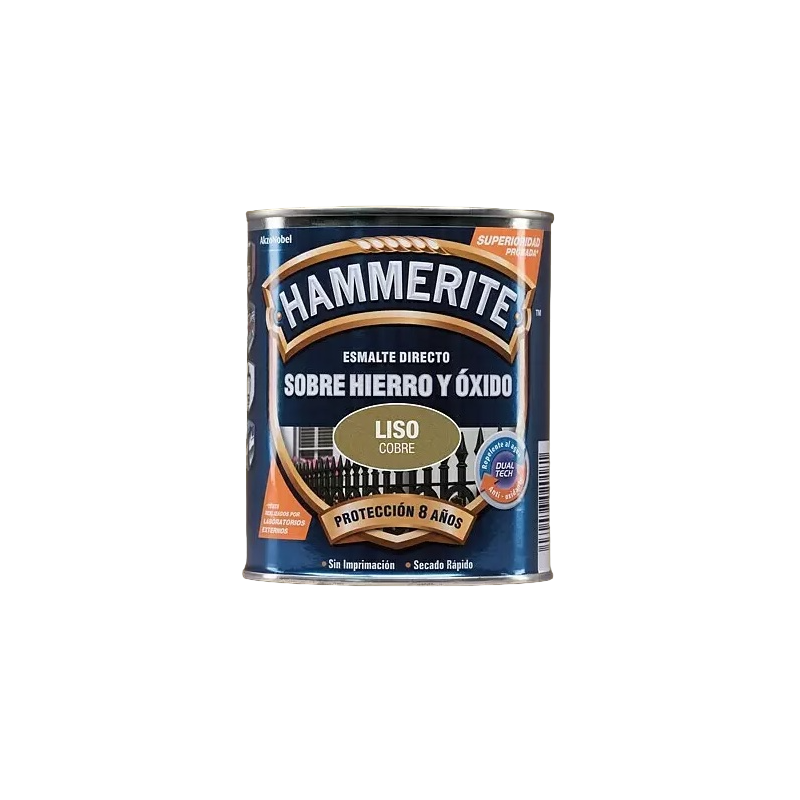 Hammerite Esmalte Directo Sobre Hierro y Óxido es un esmalte antioxidante que se aplica directamente sin necesidad de imprimación. Gracias a la tecnología Dual Tech impide la entrada de humedad y protege el metal de la oxidación y la corrosión.