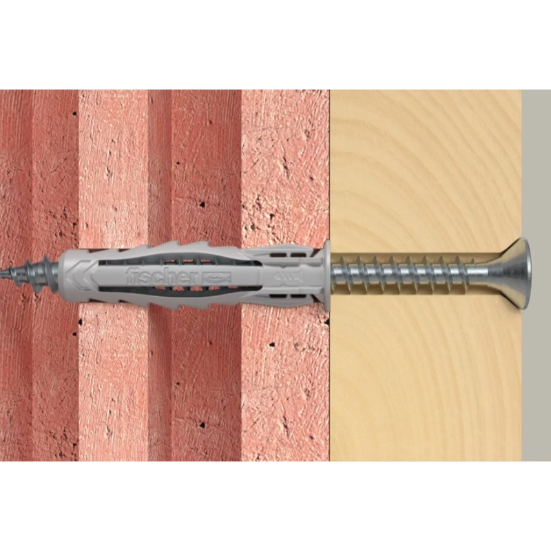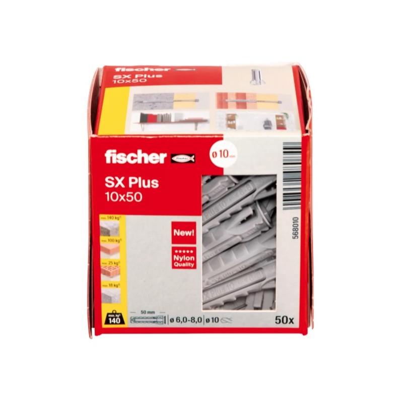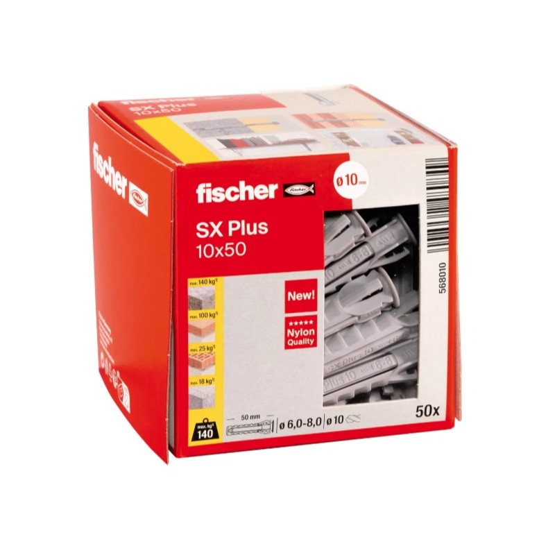 Gracias a su expansión de 4 vías, el tapón de expansión fischer SX Plus es el especialista para materiales de construcción sólidos como hormigón, ladrillos silicocalcáreos y mampostería. Las cuchillas de fijación especiales garantizan la prefijación del tornillo, lo que significa que no es necesario sujetarlo adicionalmente para aplicaciones aéreas. Esta fijación con tornillo permite al usuario un proceso de ajuste flexible y cómodo. El borde del tapón flexible también evita que el tapón se deslice más profundamente en el orificio de perforación para una instalación segura. El material de nailon de alta calidad garantiza una sujeción permanente y segura en una amplia gama de materiales de construcción sólidos y perforados.